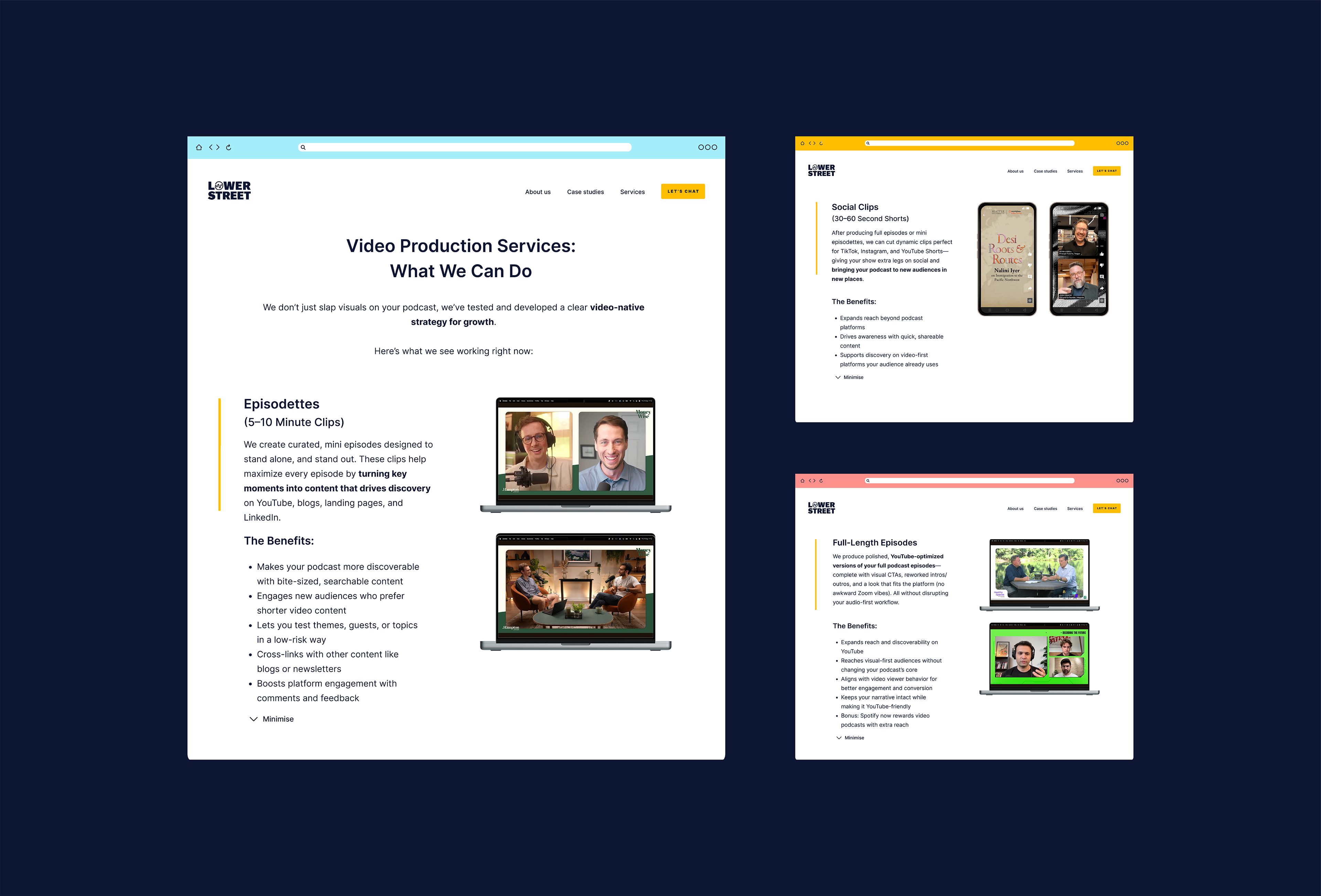 Updates to messaging, social proof and the introduction of video podcasting helped clarify the offer and improve engagement. These changes were tested through A/B experiments, with the new homepage showing a 19% increase in conversion rate compared to the previous version.