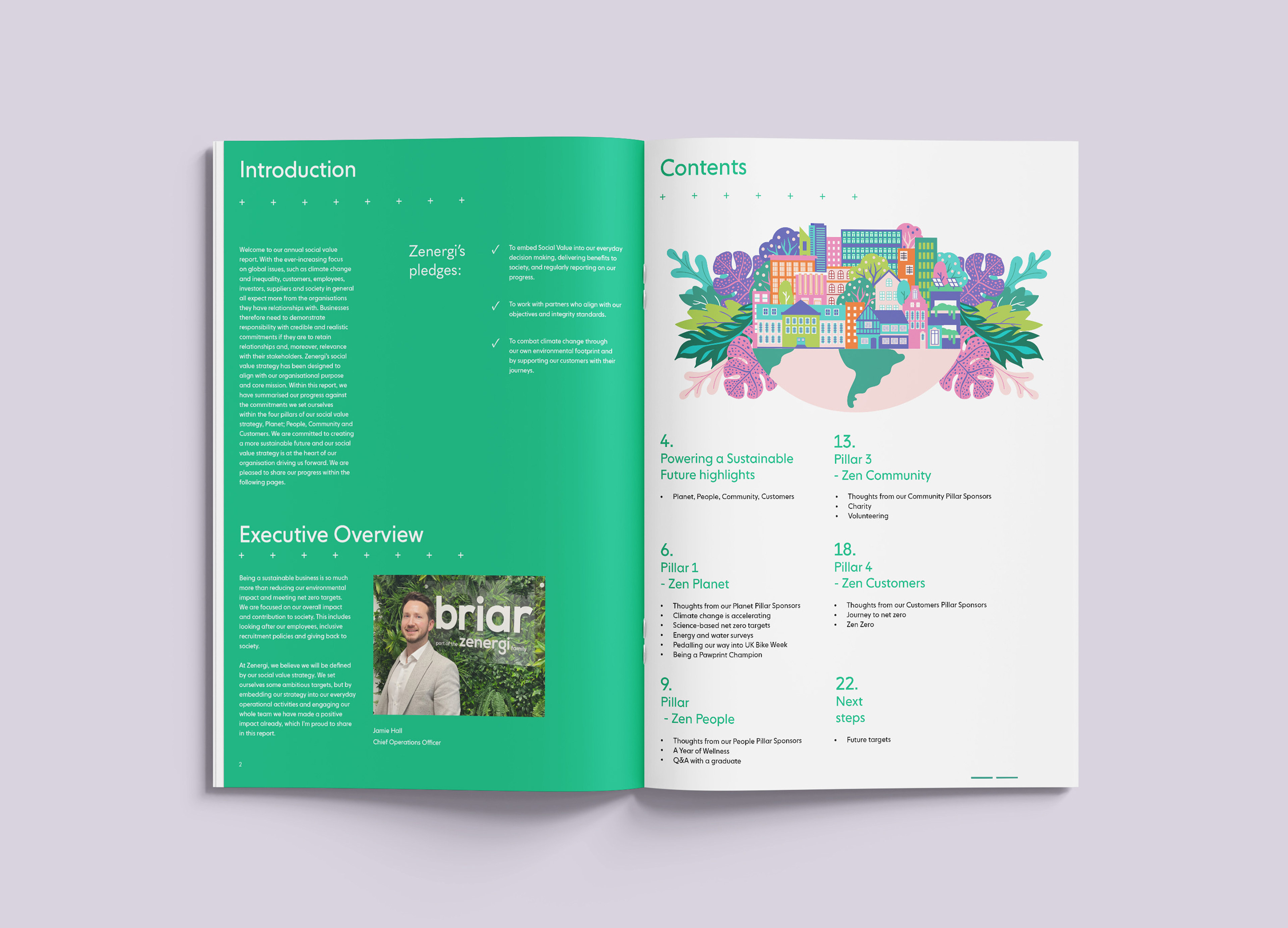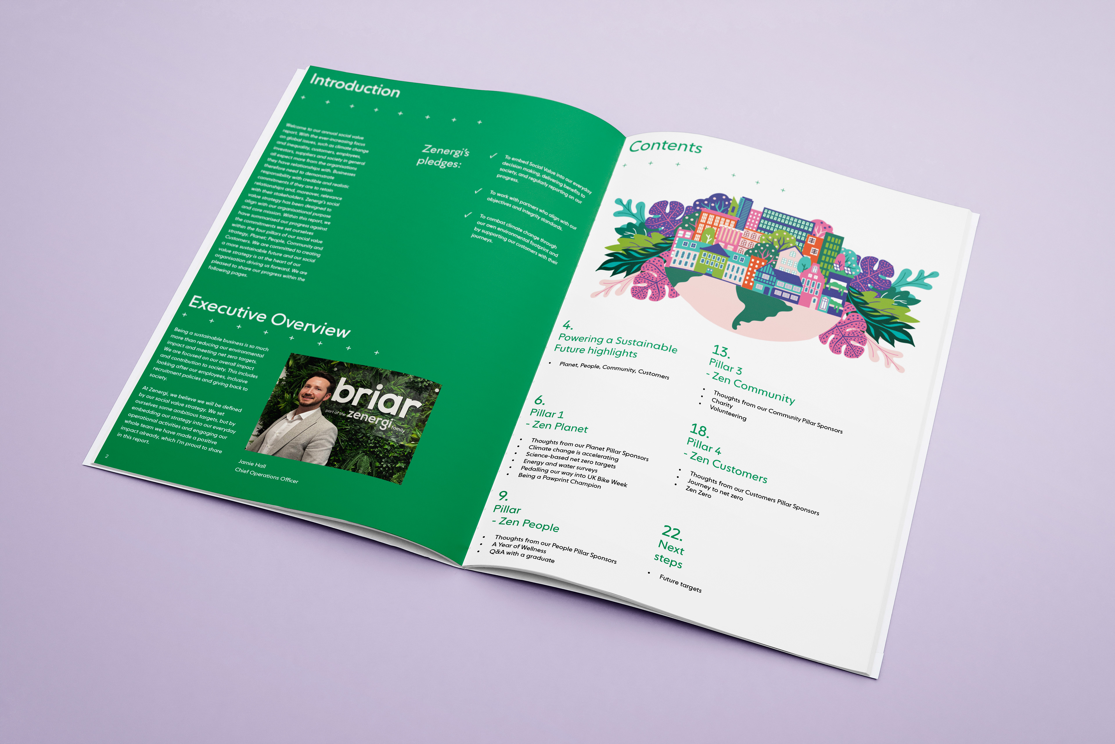 Working across multiple departments ensured accuracy and consistency throughout the document. The final report feels more engaging and easier to navigate, helping bring Zenergi’s work and impact to life.